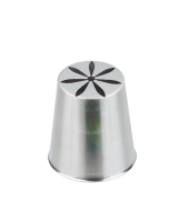насадка имеет форму шестиконечной звезды с закрытым центром и скошенными лучами. Насадка позволяет сформировать цветок из крема одним движением. Цветок получится как настоящий, со множеством деталей.